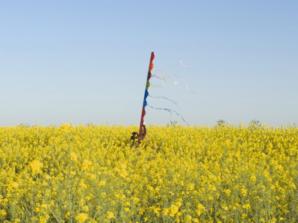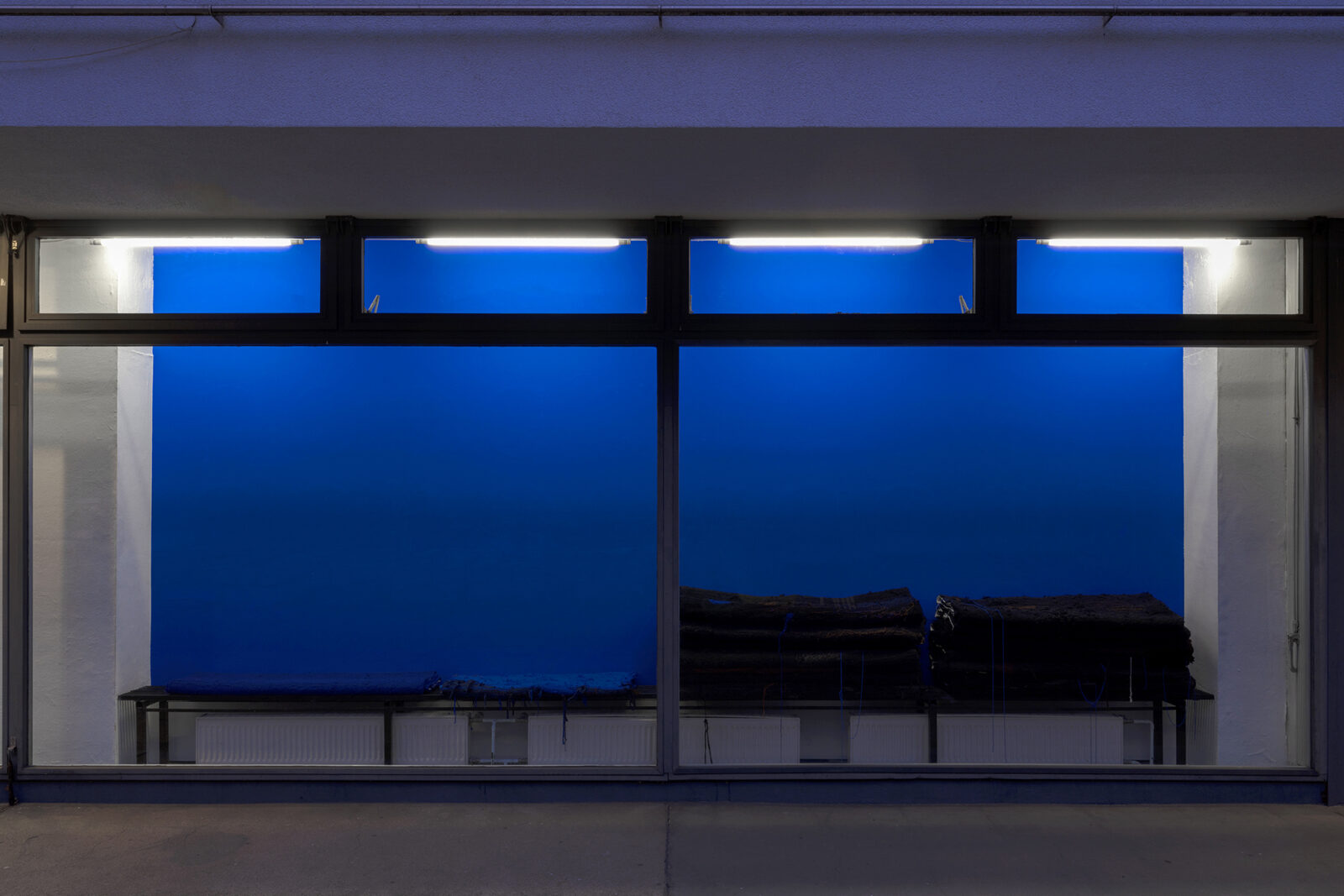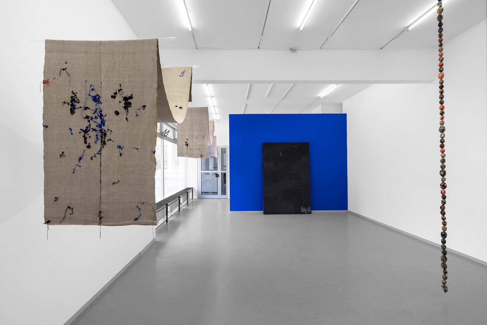The fragility of the textile structures, partly moth-eaten and disintegrating, symbolizes the fragility of a memory that must be constantly maintained. Ciemierkiewicz transfers the fragmentary nature of the historical pieces into her work and creates a new whole from them.Between 1941 and 1944, the fields around the village of Koniaczów became the scene of indescribable atrocities. Nazis killed thousands of prisoners of war and civilians of different nationalities and, at the end of the war, set up a crematorium, in which their bodies were burned. As a child, the artist roamed these fields without knowing their history. Through acts of remembrance in places where there are no traces of the crimes committed, Ciemierkiewicz reveals new forms of remembrance sensitive to the contemporary context and the intercultural diversity of the victims.A textile installation made of dark wool symbolizes the fertile farmlands that became silent witnesses to war crimes. The title of the exhibition, RAPESEED, deliberately plays with the ambiguity of the English term, which on the one hand stands for the yellow rape and gives the Ukrainian flag its color alongside the blue of the sky, and on the other hand refers to the horrors of past and present wars.At a time when nationalist tendencies are on the rise again Ciemierkiewicz shows that cultural identities in the borderland have always been fluid and explores the tradition of trans-national solidarity between all people living in the region.In collaboration with the Ukrainian artist Diana Sozonova, an installation was created using pysanky, eggshells painted according to traditional Ukrainian motifs, based on models from the archives of the Stryvihor Museum. The pysanky symbolize the liberation of the soil from the rigidity of winter, the coming of spring, new hope and life.Text by Diana Weis / 2024Ciemierkiewicz as this year’s recipient of the KVOST scholarship and the Claus Michaletz Preis 2024. The exhibition is part of Berlin Art Week / Featured Selection.