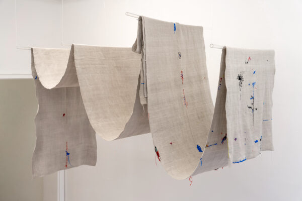 Zielnik Rozproszony, haft na tkaninie lnianej 500x70 cm, wideo HD 8'02''